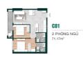 - Thiết kế: 2 phòng ngủ 2 phòng tắm, bố trí tối ưu, thông thoáng.