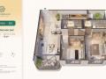 Diện tích 48 - 50m² tối ưu, không gian thoáng mát, tận dụng ánh sáng, gió tự nhiên.