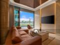 - Thiết kế nội thất: Studio8 (Úc) phong cách tối giản hiện đại, vật liệu gỗ veneer cao cấp, đá vân mây, kim loại mạ vàng.
