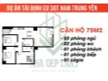 Diện tích: 75m², thiết kế 3 phòng ngủ, 1 phòng khách, 2 nhà vệ sinh.