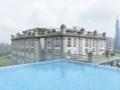 Hồ bơi Panorama toàn cảnh 360 độ nhìn về Thủ Thiêm, sông Sài Gòn và biểu tượng Landmark 81 hoa lệ.