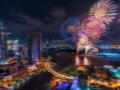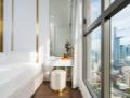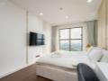 - View ban công nhìn về quận 1, Landmark 81, Bitexco, Thủ Thiêm và sông Sài Gòn.