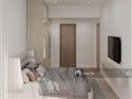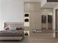 -Giường bọc nệm cao cấp, tủ đồ âm tường lớn với cửa kính sang trọng