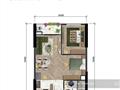 + Studio: DT tim tường 34.85m² - DT thông thủy 31.14m².