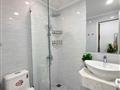 - WC đã ốp gạch men mới, có vách kính tách khô ướt hiện đại.