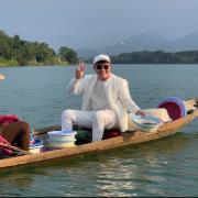 Xung quanh đều là nhà hàng buôn bán sầm uất.