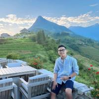 View núi Ba Vì, view cánh đồng, không gian thoáng mát.