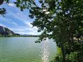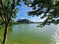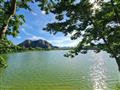 Đối diện là hồ cảnh quan, bên trái có núi đá dựng đứng hùng vĩ cảnh sắc tựa Vịnh Hạ Long trên cạn.