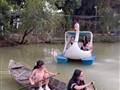 Hồ nước nuôi cá rồng bao quanh, chèo thuyền cực chill