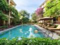 View hồ bơi và vườn xanh bao quanh không gian nghỉ dưỡng yên bình, đẳng cấp.