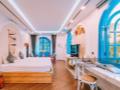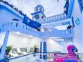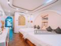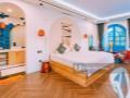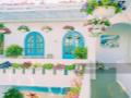 Villa xây dựng theo phong cách Địa trung hải (đảo santorini nổi tiếng của Hy Lạp), với 2 màu chủ đạo xanh - trắng, thiết kế độc bản, chuyên nghiệp, mỹ thuật cao.