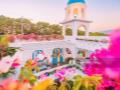Khuôn viên xanh mát kết hợp vẻ đẹp nổi bật cuả hoa giấy đỏ rực với vô số góc sống ảo cực đẹp, không khí trong lành thoải mái.