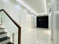 Nhà mới, thiết kế hiện đại với kính cong độc đáo, 5 tầng 1 tum, cầu thang bộ và thang máy kính giữa.