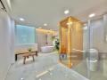 Diện tích đất: 3,45m (nở hậu 3,7m) 9,4m (CN: 34 m²). DT sử dụng gần 190 m². Kết cấu: 5 tầng BTCT + Mái BTCT. Nhà có 6 PN+1 phòng xông hơi, 5 toilet, sân thượng.