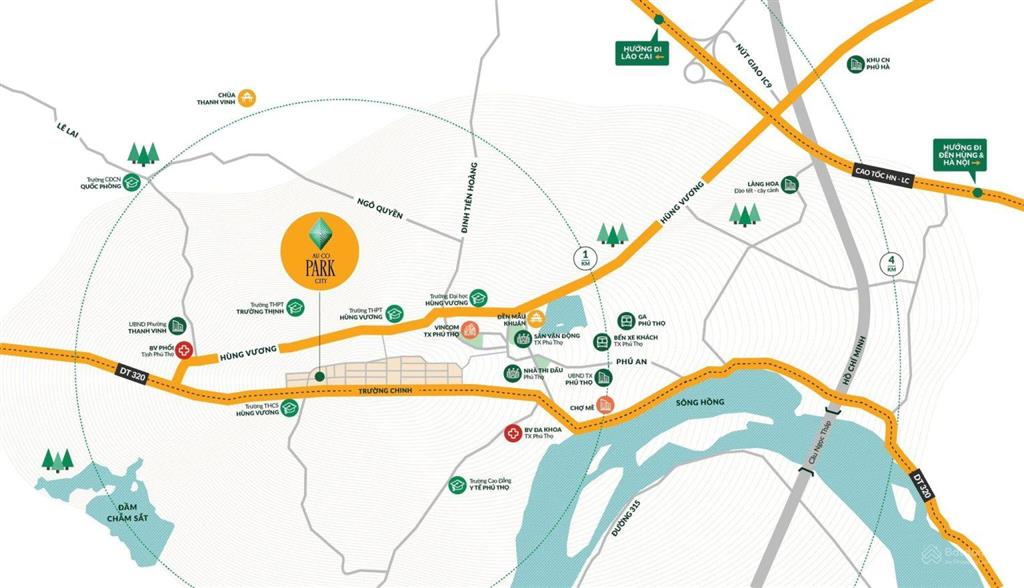 - 1km đến UBND thị xã Phú Thọ
