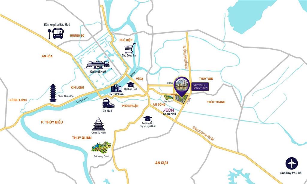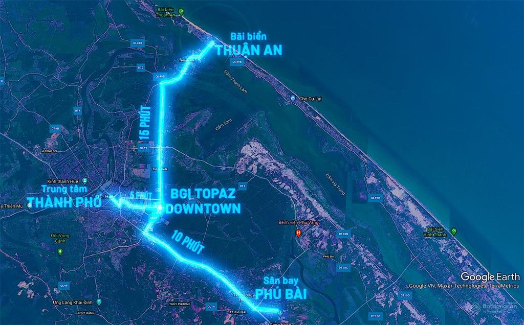 Dự án BGI Topaz Downtown thuộc khu A của Khu đô thị mới An Vân Dương, nằm tại đường Hoàng Quốc Việt nối dài, thuộc xã Thủy Phương, huyện Hương Thủy, phía Đông của TP. Huế.