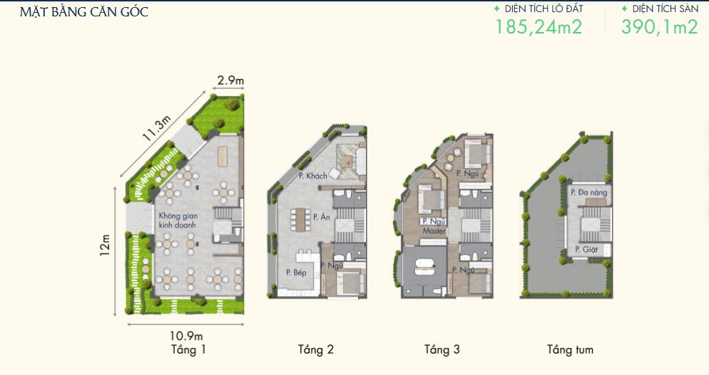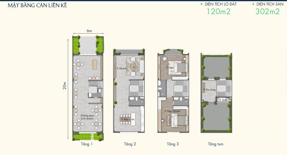 Diện tích sản phẩm: Biệt thự 240-260m2, Liền kề: 90-240m2