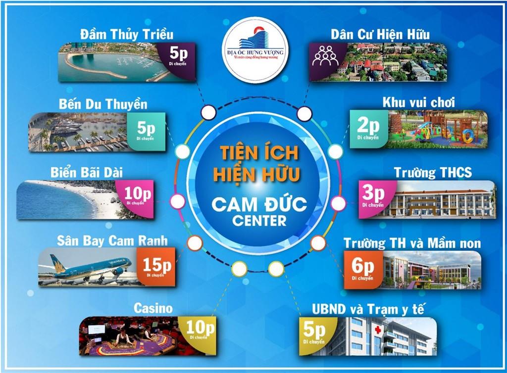 Khu dân cư Cam Đức Center là dự án đất nền được đầu tư và phát triển bởi Công ty CP Địa ốc Hưng Vượng. Tọa lạc tại trung tâm thị trấn Cam Đức, huyện Cam Lâm, tỉnh Khánh Hoà, dự án sẽ cung ứng cho thị trường khu vực 31 sản phẩm đất nền có diện tích từ 110m2-180m2.