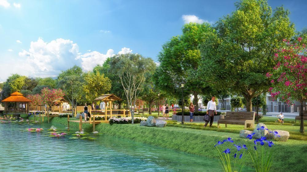 Dự án sở hữu không gian sống trong lành, xanh mát với các trục đường nội khu được phủ xanh bởi những hàng cây tươi mát. Công viên nhiều cỏ hoa đem lại cho cư dân bầu không khí thanh khiết và tô điểm cho vẻ đẹp của những căn nhà phố xinh xắn.