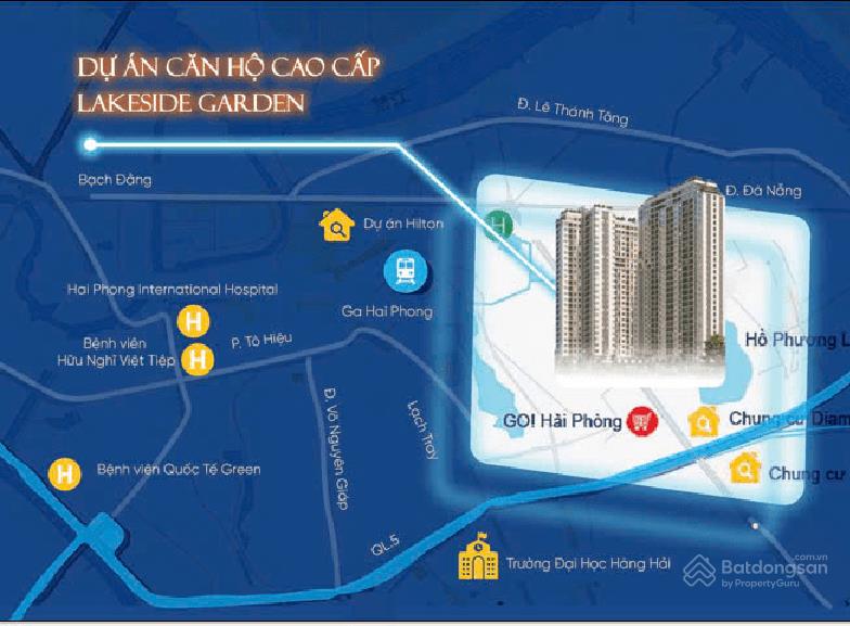 Chung cư Lakeside Garden tọa lạc ngay tại khu đô thị mới cạnh hồ Phương Lưu, ngay sát trục đường Lê Hồng Phong, Phường Đông Khê, Quận Ngô Quyền, Thành phố Hải Phòng.