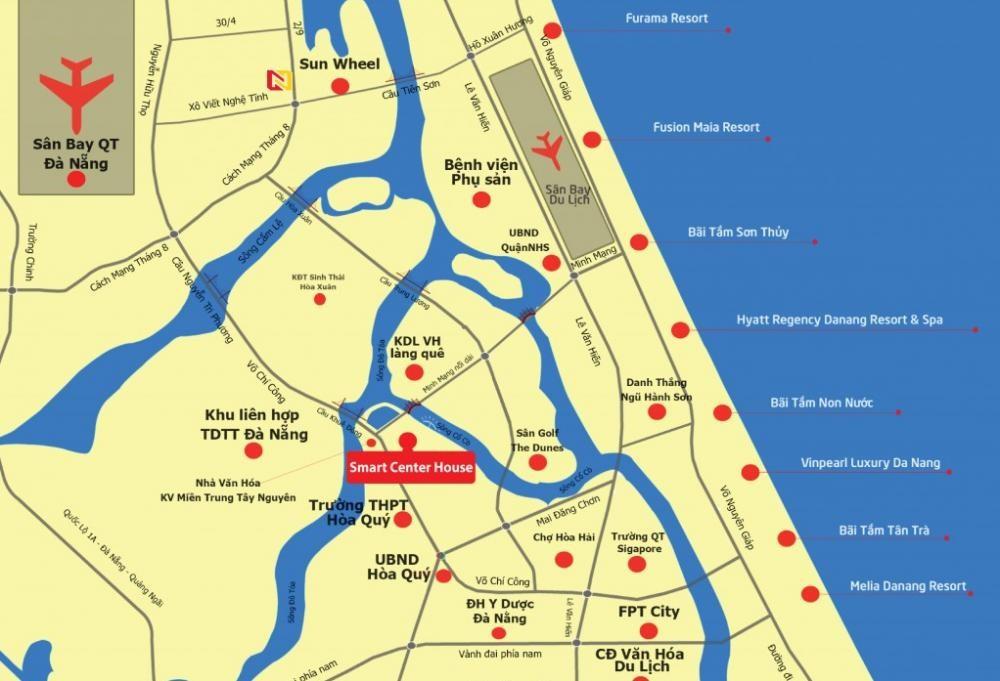 Đặc biệt, từ dự án 5 phút kết nối ra biển non nước và những bãi tắm như Tân Tràm, Non Nước, Sơn Thủy, 3km là tới chọ Hòa Quý, Hòa Hải, Hòa Xuân, chợ Đầu Mối lớn nhất thành phố, 4km là tới siêu thị Lotte, sân bay quốc tế Đà Nẵng, công viên Asian Park, sân golf và Resort cao cấp.