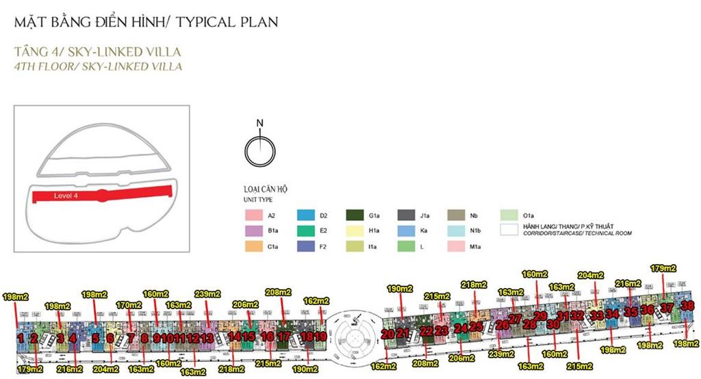 Skylinked Villa: 90 căn (149.0 – 227.3 m2).
