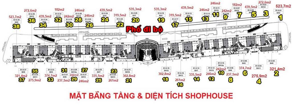Shophouse: 30 căn (187.6- 672.4 m2).