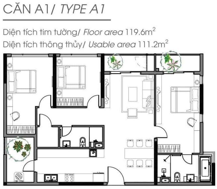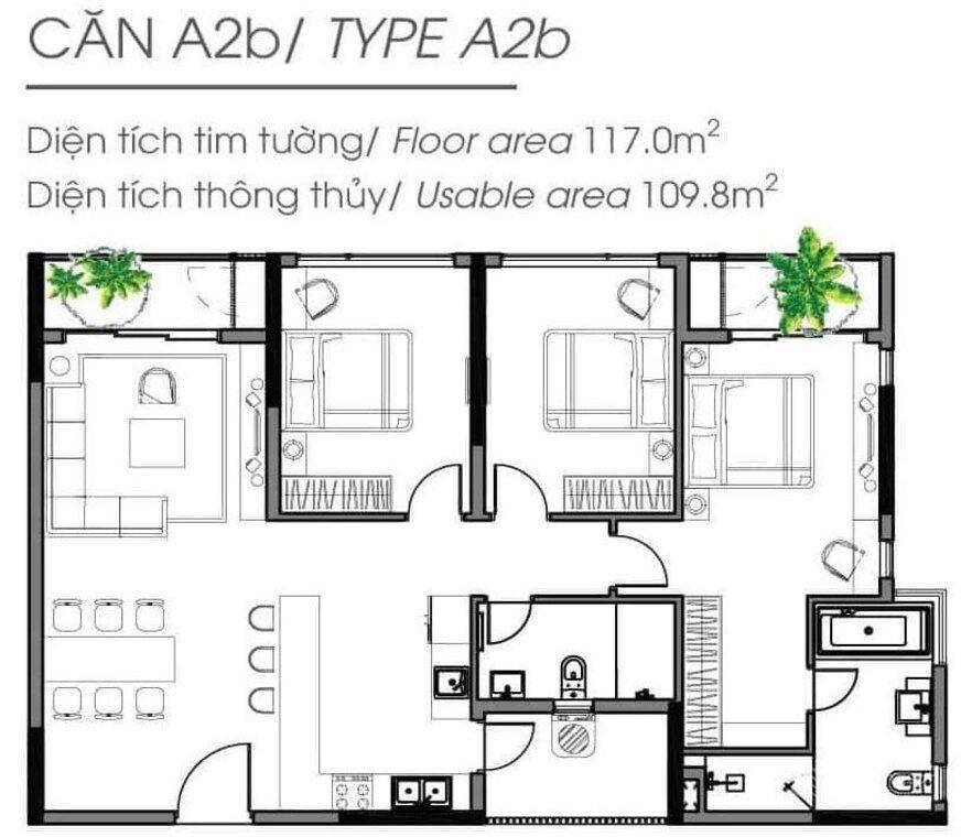 - Diện tích 117.3m2, 119.6m2 - Giá bán căn hộ: 5,8 tỷ – 6,2 tỷ
