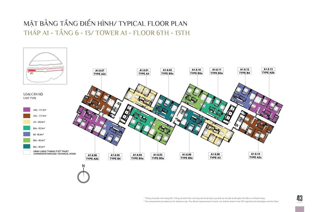 Tầng 6-13. Tầng căn hộ cao cấp - Tổng 928 căn ( 400 căn 3 phòng ngủ, 528 căn 2 phòng ngủ)