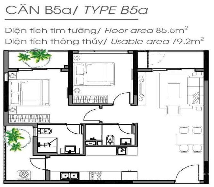 - Diện tích 85.5m2, 88.8m2 - Giá bán căn hộ: 4,3 tỷ – 4,8 tỷ
