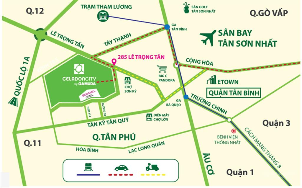 Ngoại khu: Chợ Sơn Kỳ, ĐH Công Nghiệp Thực Phẩm, BigC Trường Chinh hoặc khu trung tâm thương mại Aeon Mall…
