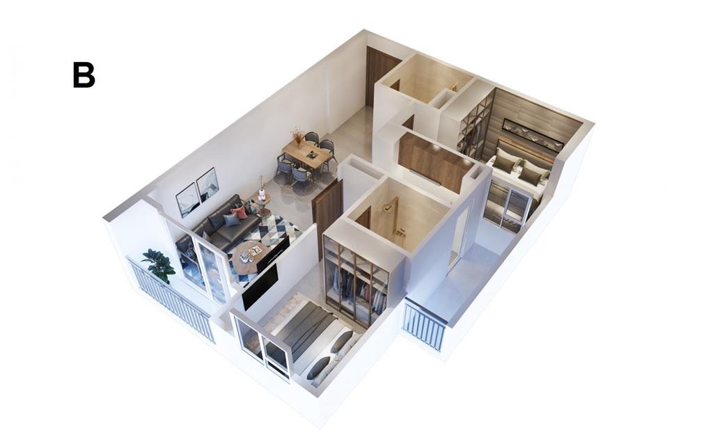 - Căn 2 phòng ngủ, diện tích từ 52 – 69m2: khoảng 630 - 700 triệu;