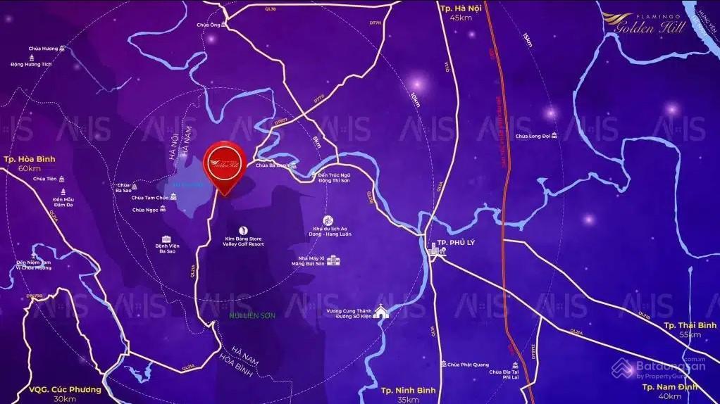 Flamingo Golden Hill tọa lạc tại Quốc lộ 21A, thị trấn Ba Sao, huyện Kim Bảng, tỉnh Hà Nam.