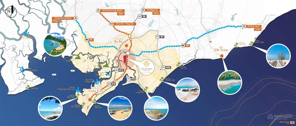 Gold Coast Vũng Tàu nằm ở phía Tây huyện Long Điền, là vị trí cửa ngõ, tiếp giáp với thành phố Bà Rịa và thành phố Vũng Tàu. Với tuyến đường lớn được quy hoạch đi qua trục trung tâm khu đô thị sẽ là cầu nối liên kết dự án với các khu đô thị lớn như: Thành phố Bà Rịa, thành phố Vũng Tàu, thị trấn Long Điền, thị trấn Long Hải. Với vị trí thuận lợi, Gold Coast Vũng Tàu sẽ là điểm đón lý tưởng trong hành trình di chuyển từ Thành phố Hồ Chí Minh tới Thành phố Vũng Tàu.