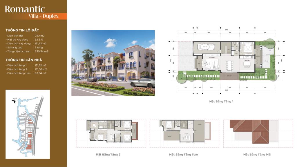 - Biệt thự song lập: Từ 250m2, gồm 3 tầng.