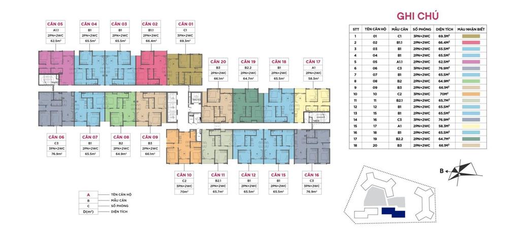 Mặt bằng điển hình Tòa N01B: