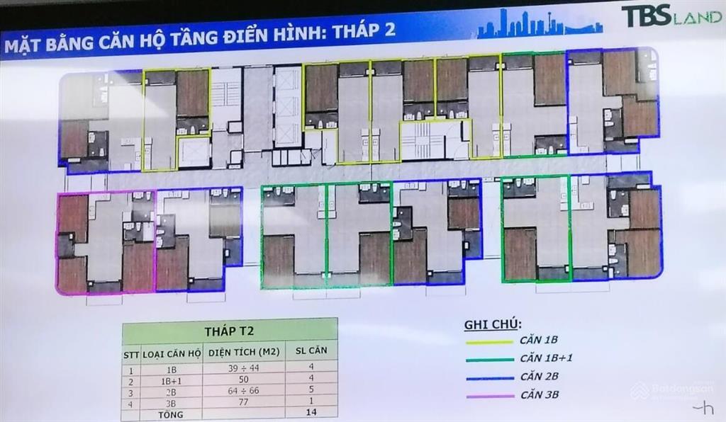 - Căn hộ 1 phòng ngủ: Diện tích 39 - 44m2 - Số lượng 100 căn.