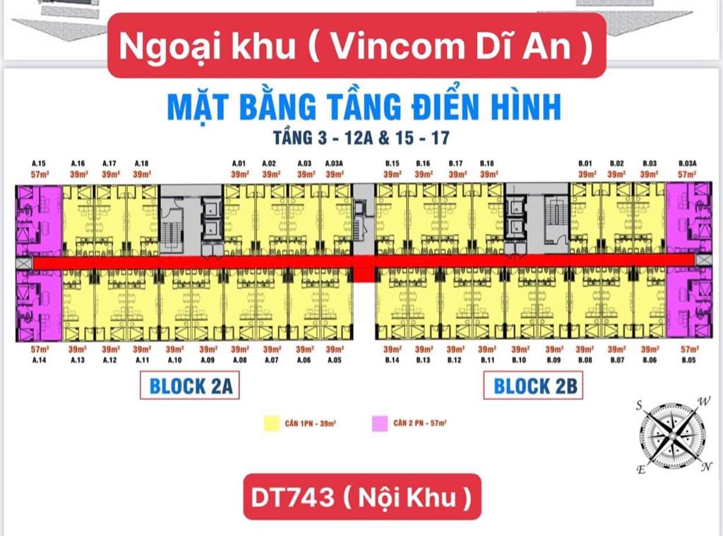 - Căn 1PN: 39m2