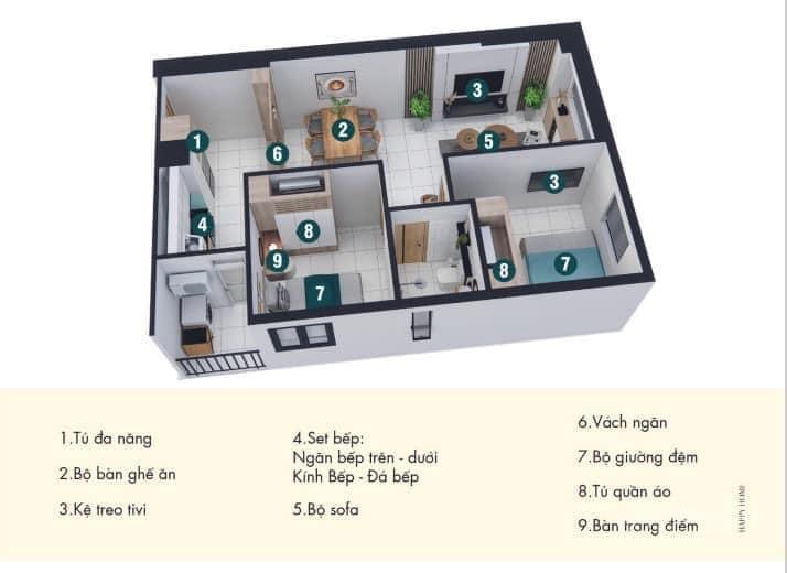 Các mẫu căn hộ trong dự án NOXH Happy Home Bình Dương được thiết kế theo phong cách hiện đại và tối ưu công năng sử dụng, chú trọng không gian thoáng đãng và ánh sáng tự nhiên, mang lại cuộc sống thoải mái cho cộng đồng cư dân. Dưới đây là một số hình ảnh phối cảnh căn hộ Happy Home Dĩ An: