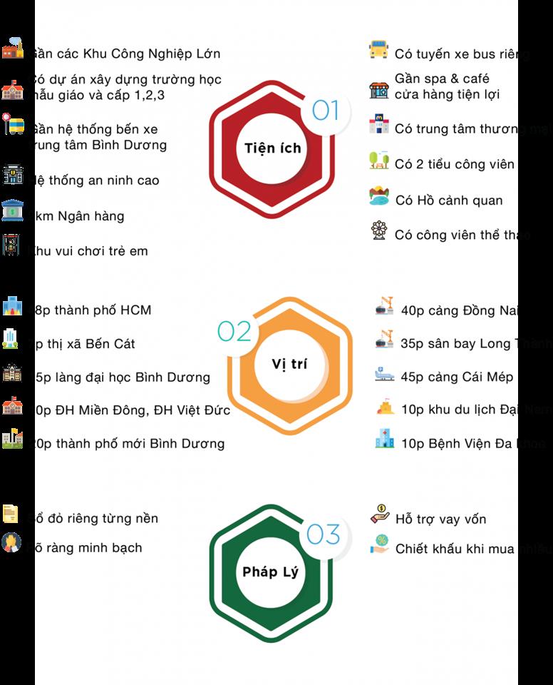 Hưng Thịnh Golden Land có hạ tầng đồng bộ, kết nối giao thông dễ dàng khi sở hữu lợi thế nằm ngay khu vực phát triển công nghiệp - dịch vụ, đô thị của tỉnh Bình Dương, đồng thời tiếp giáp các trung tâm kinh tế lớn như Thành Phố Mới, Thủ Dầu Một, Bến Cát và gần kề các khu công nghiệp lớn như Khu kỹ nghệ Singapore, KCN An Tây, KCN Bình Dương, KCN Mỹ Phước 1,2,3,4, KCN Việt Hương.