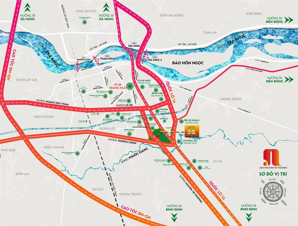 Dự án KDC Nguyễn Tri Phương nằm ngay vị trí giao cắt của 4 trục đường huyết mạch tại trung tâm TP. Quảng Ngãi, gồm: đường Quang Trung – đường Trường Chinh – đường Huỳnh Thúc Kháng – đường Nguyễn Tri Phương, đồng thời kết nối với trục 32m La Hà – Tư Nghĩa.