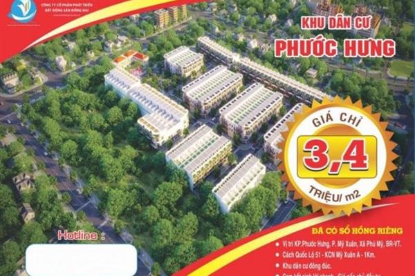 Khu dân cư Phước Hưng là dự án đất nền được triển khai với quy mô 16 nền diện tích đa dạng, dao động từ 500-750m2. Tọa lạc tại khu phố Phước Hưng, phường Mỹ Xuân, TX. Phú Mỹ, Bà Rịa – Vũng Tàu, KDC Phước Hưng sẽ đem đến cuộc sống tiện nghi, hiện đại cho mọi cư dân tương lai nhờ quy hoạch đồng bộ và vị trí đắc địa khi chỉ cách Quốc lộ 51 và KCN Mỹ Xuân A khoảng 1km.