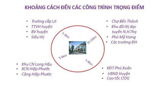 - Nhà phố liền kề Thanh Quế Riverside cách ủy ban xã 20m, cách siêu thị Coopmart 1km, cách chợ 500m, cách trường học 2km, di chuyển về quận 1 chỉ 20 phút, về khu Phú Mỹ Hưng 15 phút.