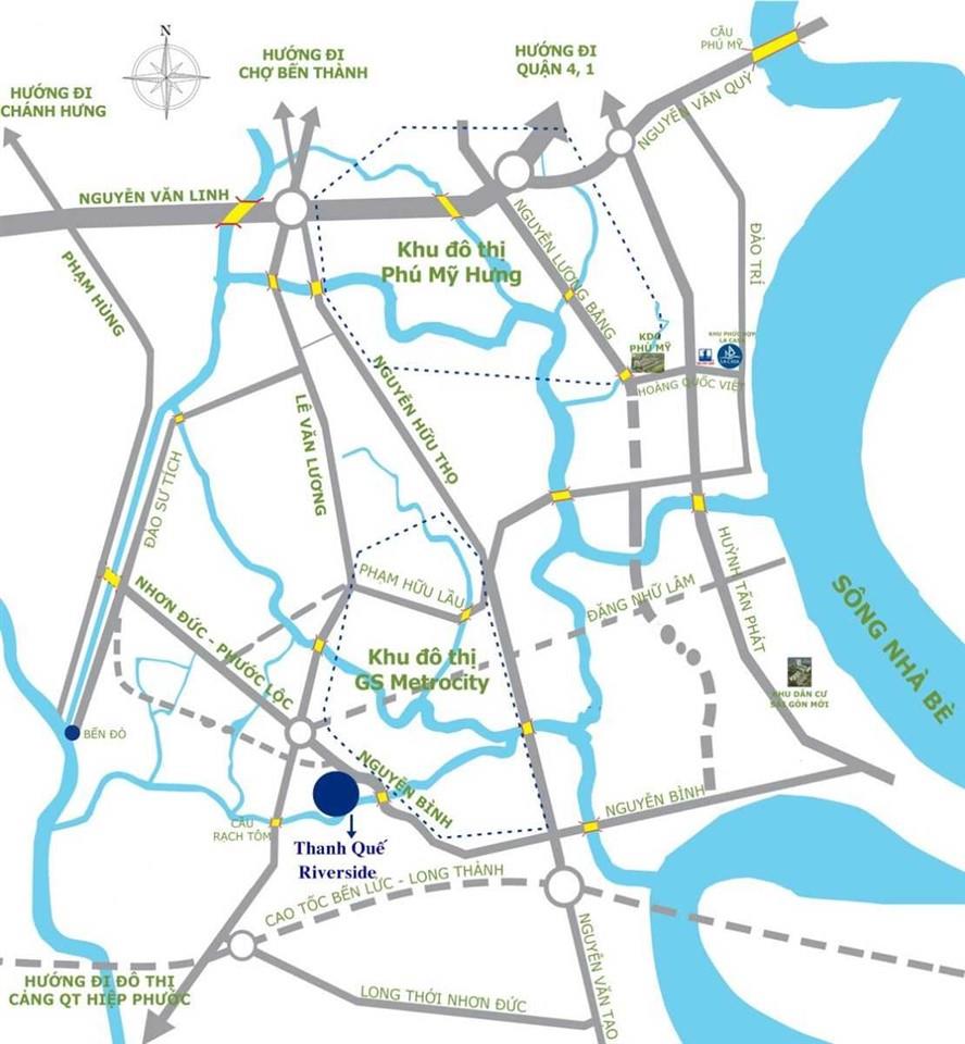 Nhà phố liền kề Thanh Quế Riverside nằm trên địa bàn xã Nhơn Đức, huyện Nhà Bè, ngay bên sông Rạch Tôm nên hứa hẹn sẽ mang đến cho dân cư cảm giác an lành, thoải mái mà hiếm nơi nào có được.