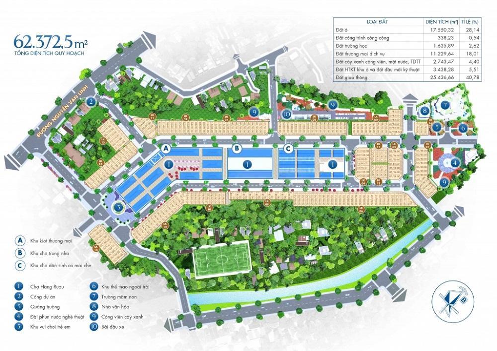 - Còn lại dành cho đất cây xanh, công trình công cộng, trường học và khu đất đầu mối kỹ thuật