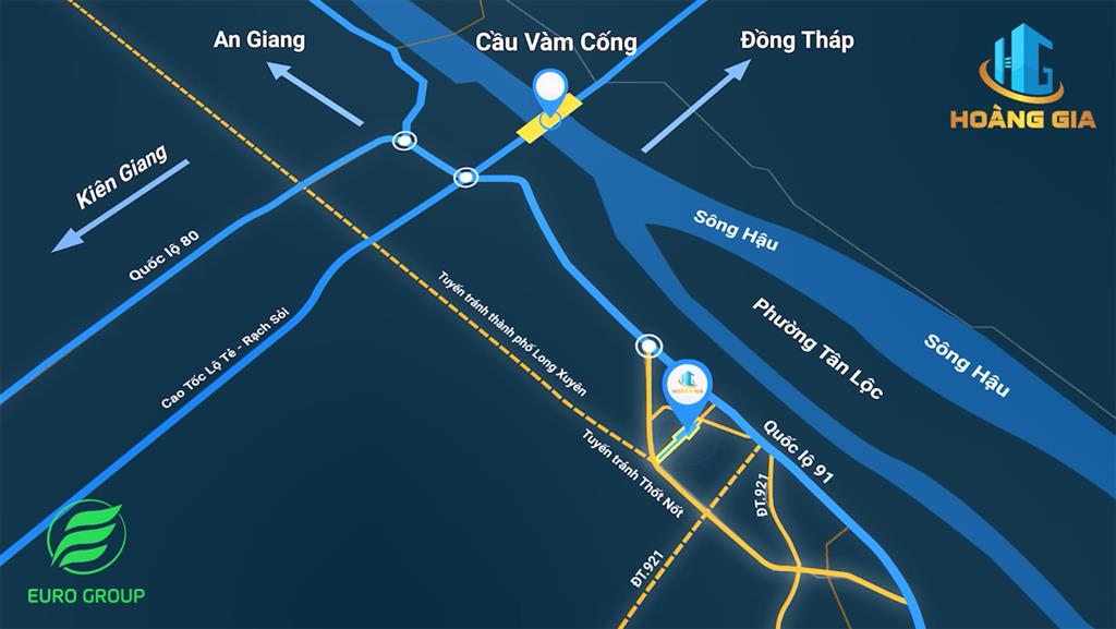Dự án Khu đô thị mới Hoàng Gia nằm ngay mặt tiền Nguyễn Hữu Cảnh nối dài, thuộc địa phận phường Thốt Nốt, quận Thốt Nốt, TP. Cần Thơ. Phía Đông Bắc dự án giáp khu tái định cư Long Thạnh 2, phía Đông Nam và Tây Bắc giáp ruộng, phía Tây Nam giáp đường tránh Quốc lộ 91. Với vị trí này, từ dự án Hoàng Gia, cư dân có thể nhanh chóng di chuyển đến cao tốc Lộ Tẻ – Rạch Sỏi, cầu Vàm Cống, trung tâm TP. Cần Thơ và tuyến tránh thành phố Long Xuyên… chỉ trong vòng 30 phút.