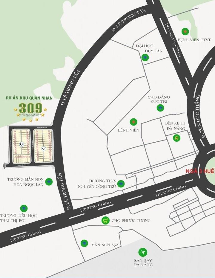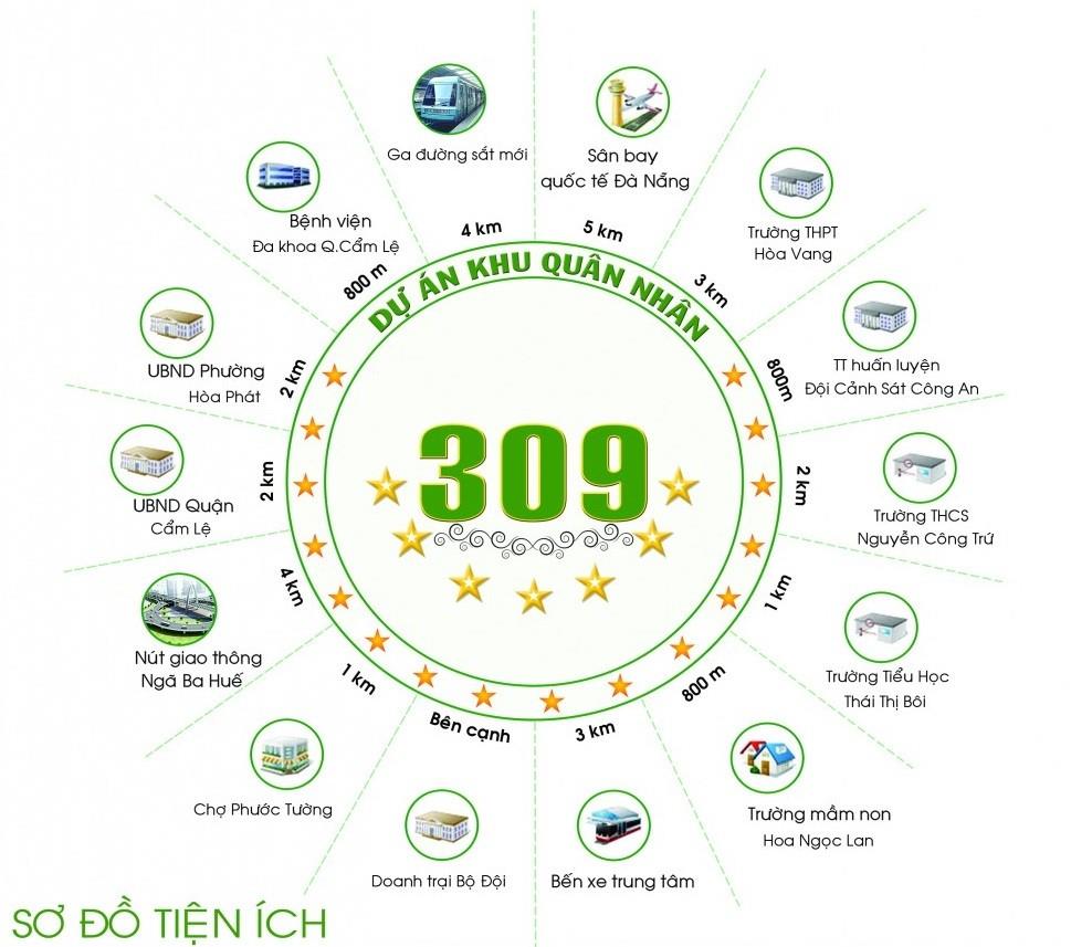 Khu quân nhân 309 tọa lạc tại vị trí huyết mạch trong tương lai phía Tây Nam TP. Đà Nẵng, được bao bọc bởi hàng cây lộc vừng xanh mướt sẽ tạo ra điểm nhấn đặc biệt chưa từng có ở TP. Đà Nẵng.