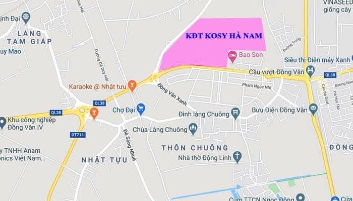 Dự án Kosy Hà Nam tọa lạc tại mặt đường Quốc lộ 38, phường Duy Hải, thị xã Duy Tiên, tỉnh Hà Nam. Dự án Kosy Lita Hà Nam cách đường QL1A 600 m, cao tốc Cầu Giẽ Ninh Bình 2 km. Bao quanh khu đô thị là các khu công nghiệp Đồng Văn II, Đồng Văn III, Đồng Văn IV.
