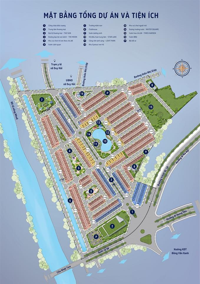 Khu cây xanh, mặt nước thể dục thể thao: Bố trí giữa khu đất và xen kẽ trong khu ở, tạo không gian nghỉ ngơi và sinh hoạt ngoài trời cho người dân trong khu vực.
