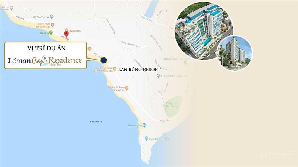 Dự án Léman Cap Residence có mặt tiền nằm trên đường Hạ Long - cung đường ven biển được coi là đẹp bậc nhất TP. Vũng Tàu, trải dài 3,8km, uốn lượn dọc theo núi Nhỏ. Vị trí dự án Léman Cap Residence có view biển trực diện, đồng gần các điểm vui chơi, biểu tượng nổi tiếng của thành phổ biển Vũng Tàu như ngọn hải đăng, tượng Chúa Giê-su, mũi Nghinh Phong,…